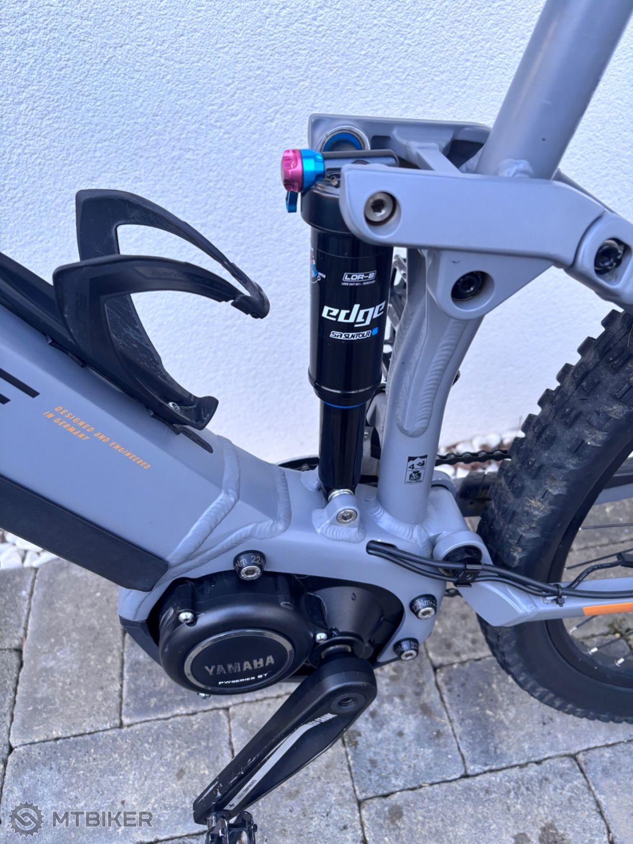 • Zadný tlmič: SR Suntour Edge LOR8 – vzduchový tlmič so zdvihom zadnej stavby 120 mm, nastaviteľný tlak podľa váhy jazdca.