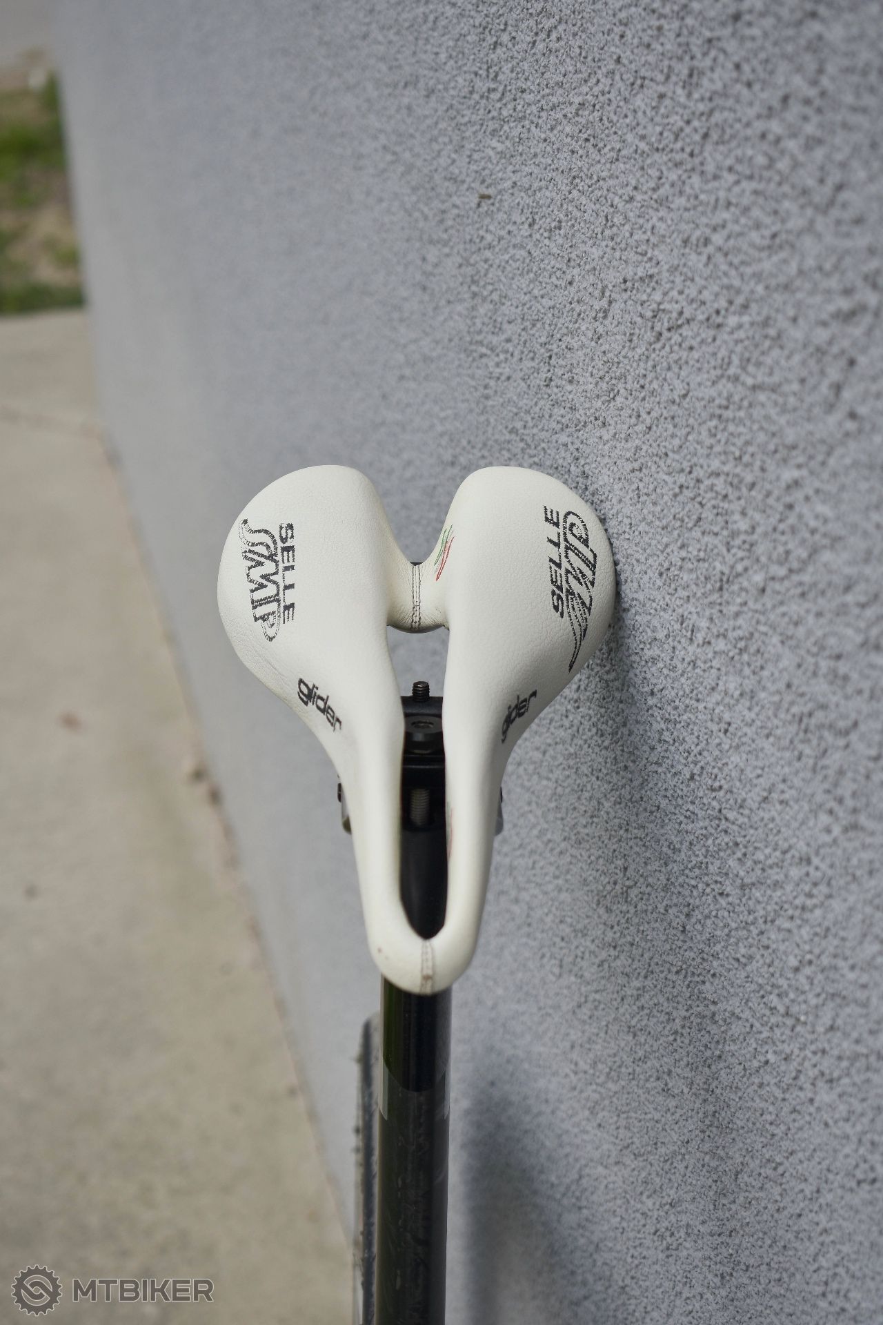 Karbonová sedlovka, karbonové Ritchey sploštené riadidlá (400 mm). Sedlo Selle SMP Glider.