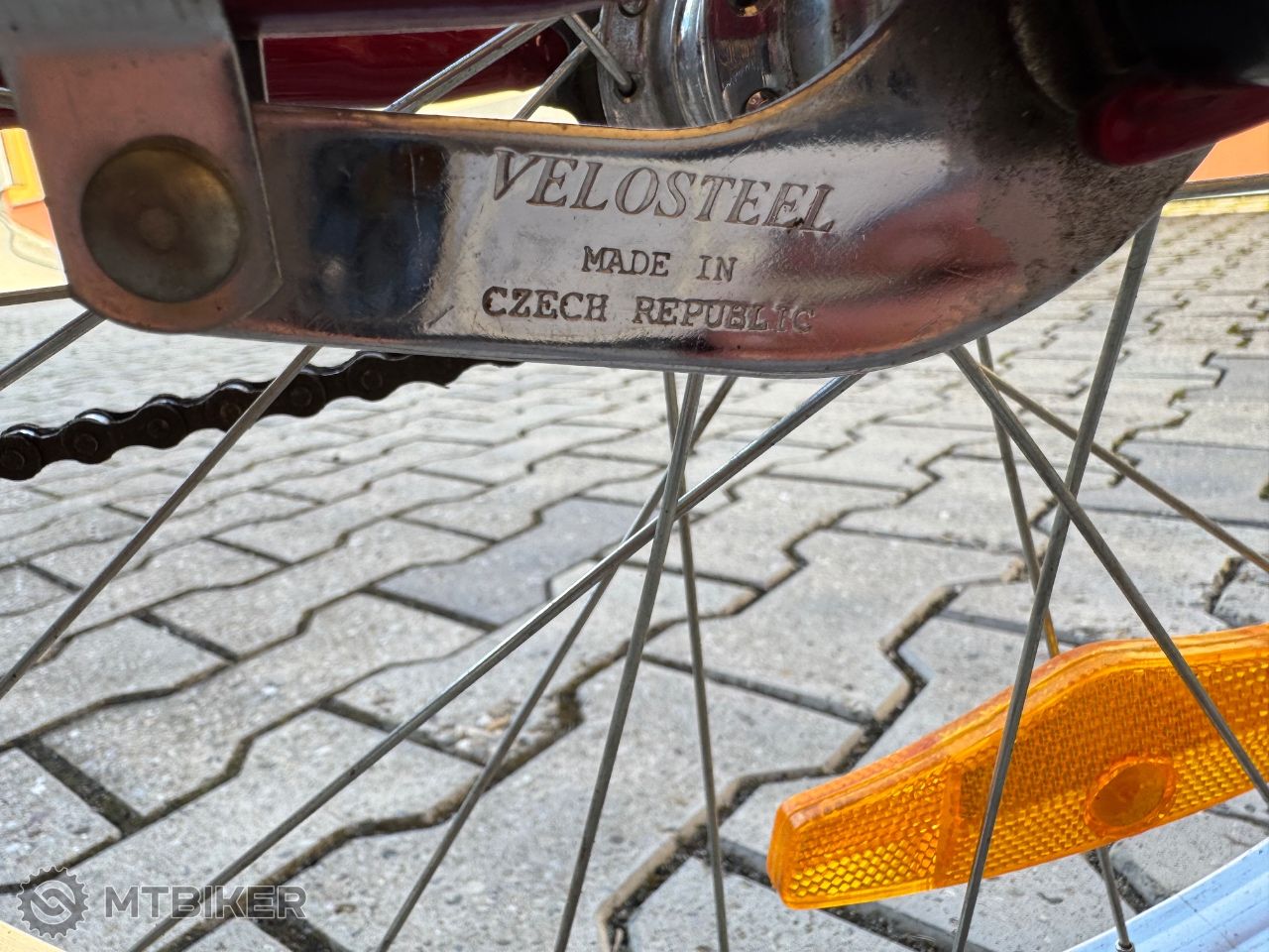 Má 20 palcové kolesá a takmer nové plášte, blatníky, nastaviteľné sedlo, prednú a zadnú brzdu, gripy a kryt na reťaz.