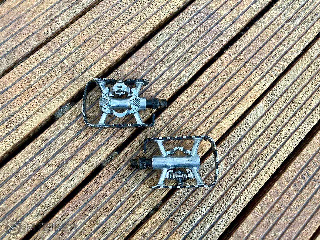 Trekingové pedále z jednej strany SPD z druhej platforma pre bežnú obuv. Našiel som ich v skrini pri robení poriadku, možno sa niekomu hodia ako prvé spd na skúšku. Ja som rýchlo prešiel na obojstranné SPD, od vtedy ležia zabudnuté. Preferujem osobný odber.