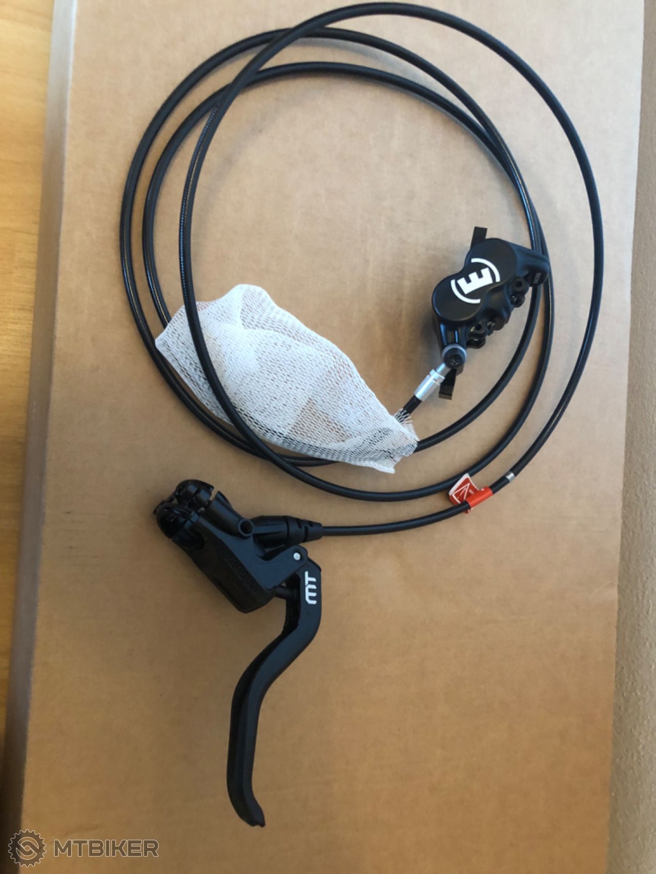 Dĺžka hadíc je neskrátená, pretože som upgradoval na MT7, pôvodné hadice som nechal v ráme a nové hadice z MT7 som dal na tieto MT 5. Takže dĺžka je neskrátená: