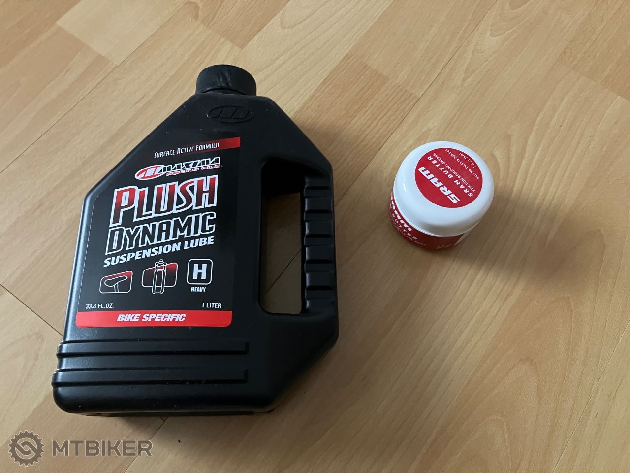 1l RockShox Maxima Plush Dynamic olej do vidlíc a 29ml Sram Butter vazeilna